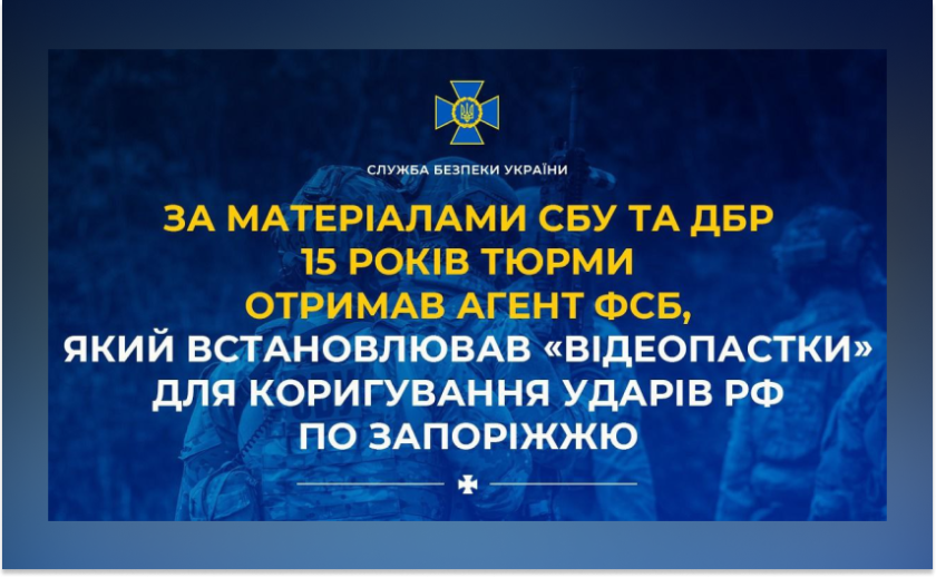 За матеріалами Служби безпеки України та Державного бюро розслідувань суд призначив 15 років позбавлення волі з конфіскацією майна агенту фсб, затриманому у Запоріжжі в жовтні 2023 року. Вирок уже набрав законної сили.
