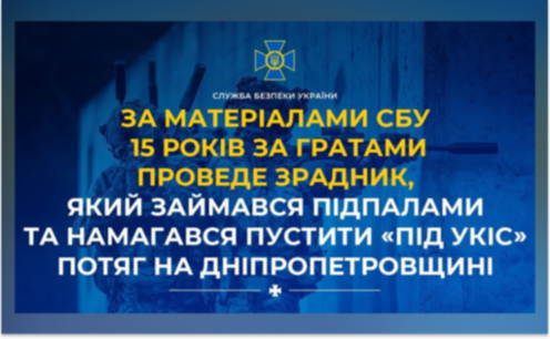 Суд визнав винним 25-річного мешканця Дніпропетровщини, завербованого російською спецслужбою, у спробах диверсій на залізничній інфраструктурі регіону. За матеріалами СБУ зраднику призначили 15 років ув’язнення з конфіскацією майна.