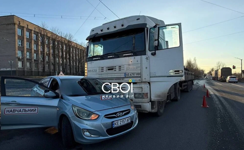 У Кривому Розі на Нікопольському шосе сталася дорожньо-транспортна пригода за участю вантажівки та навчального автомобіля.