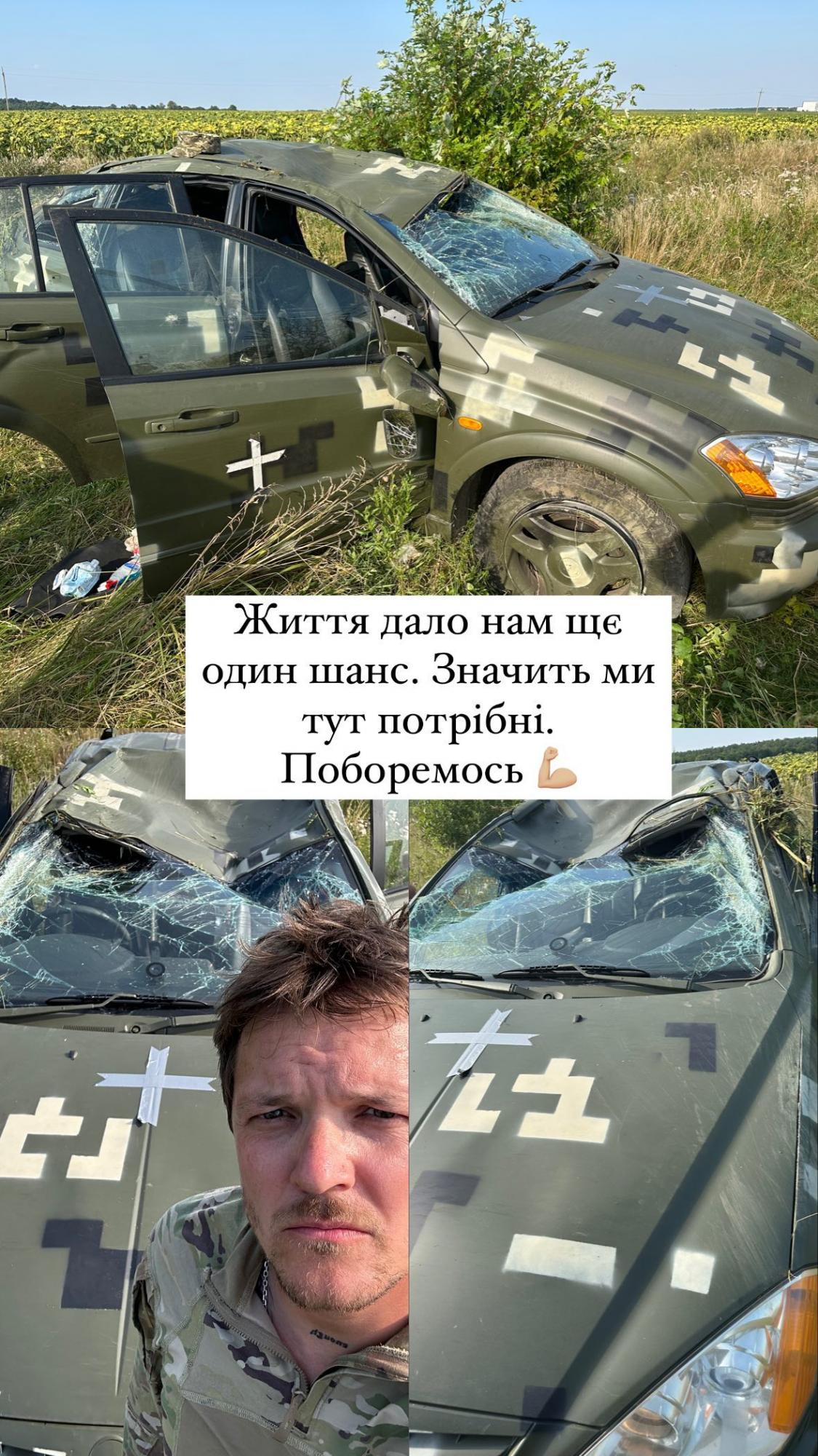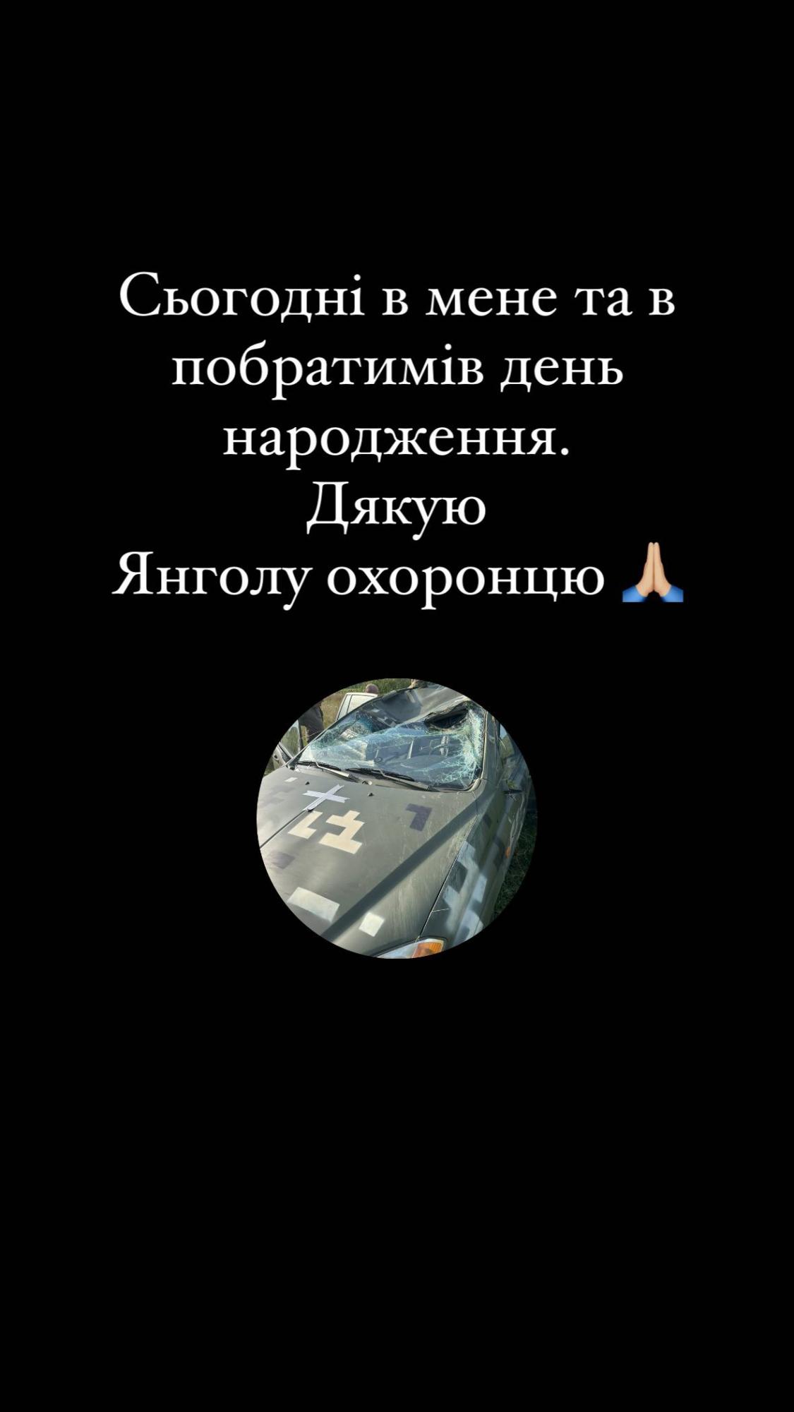 "Життя дало нам ще один шанс. Значить, ми тут потрібні. Поборемося. Сьогодні у мене і моїх побратимів другий день народження. Дякую ангелу-охоронцю", – написав український артист.